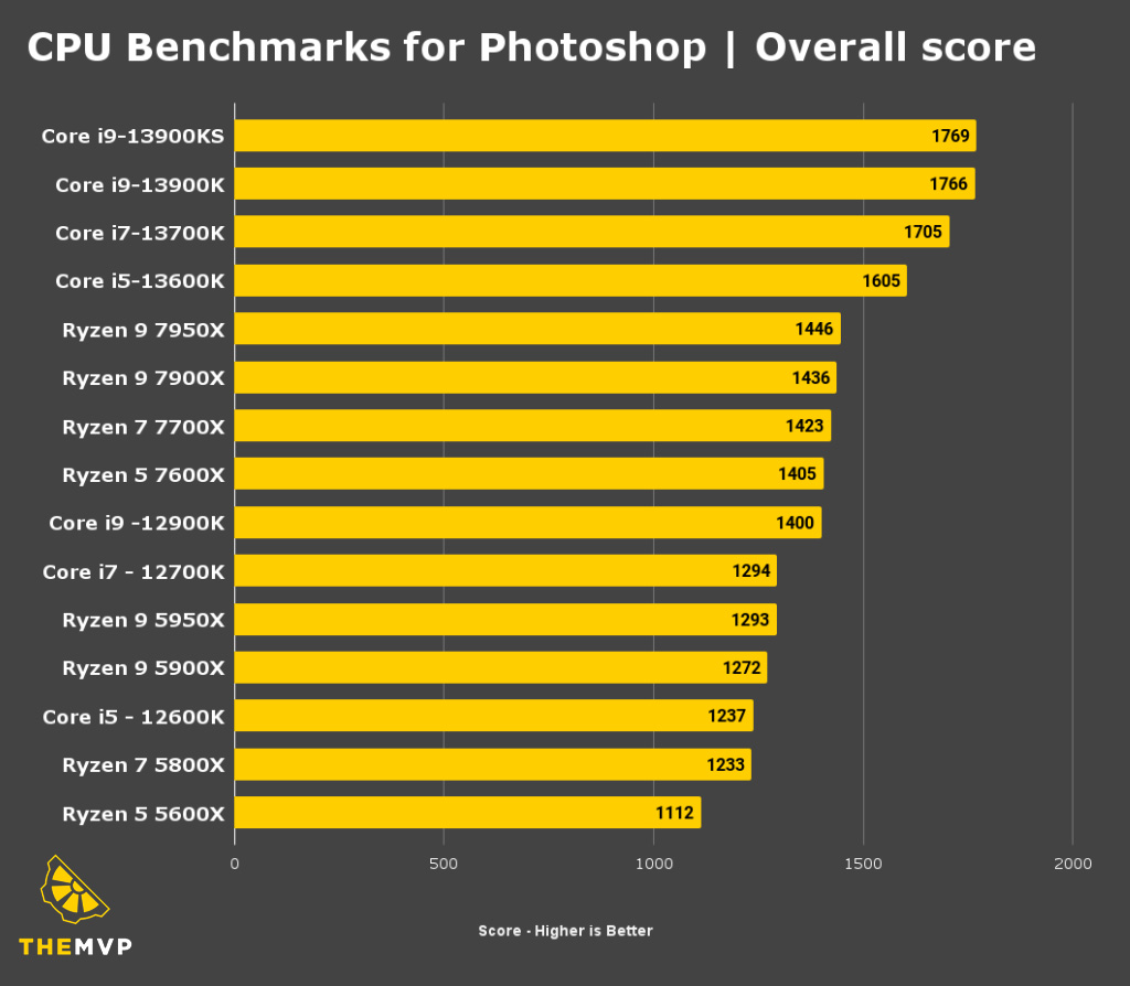 What does translate to better performance is single-core performance. So naturally, the fastest CPU for Photoshop is Intel’s Core i9 13900K, but the Core i5 13600K is where you’ll get a bang for your buck.