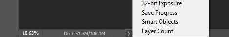 Keep in mind that this recommendation is based on the document size once it is opened, not the file size. Photoshop often displays two sizes such as 15.7M/47.8M. The left number is the flat file size (if you were to export without compression), while the right number is the actual size of the Photoshop document with all the layers. The right number, which includes all the layers, is the most relevant when determining the amount of RAM your system needs.